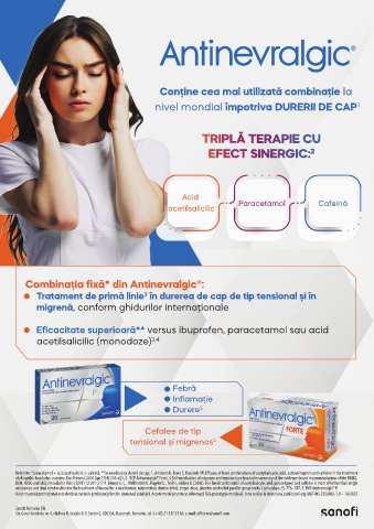Referinte: *paracetamol + acid acetilsalicilic + cafeină; **în ameliorarea durerii de cap; 1. Anneken K, Evers S, Husstedt IW. E cacy of xed combinations of acetylsalicyclic acid, acetaminophen and ca eine in the treatment