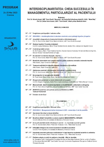 24-25 Mai 2023 MANAGEMENTUL PARTICULARIZAT AL PACIENTULUI