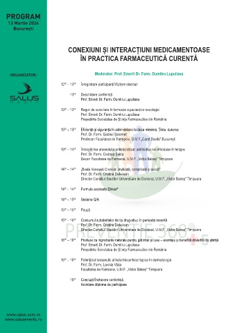 ORGANIZATOR: Moderator: Prof. Emerit Dr. Farm. Dumitru Lupuliasa